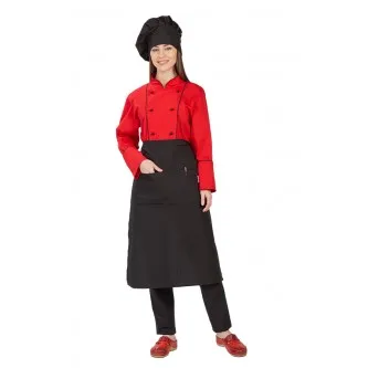 Фартук повара длинной до колена, с передним карманом, разделенным строчкой на две части...