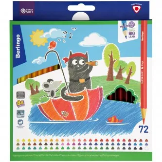 Карандаши цветные Berlingo "SuperSoft. Жил-был кот", 72цв., трехгран., заточен., картон, европодвес