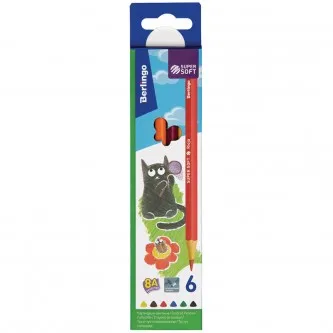 SuperSoft" - линейка качественно новых цветных карандашей Berlingo. 6 цветов. Шестигранная форма. Ук..