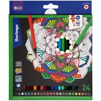SuperSoft" - линейка качественно новых цветных карандашей Berlingo. 24 цвета. Шестигранная форма. Ук..
