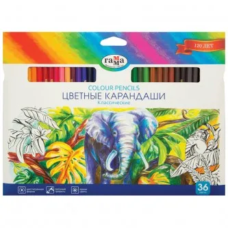 Карандаши цветные Гамма "Классические", 36цв., заточен., картон. упаковка, европодвес