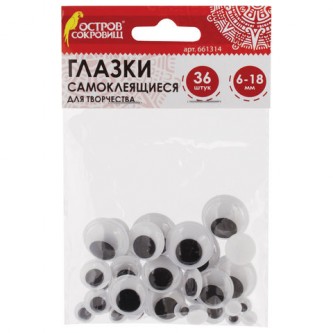 Глазки для творчества самоклеящиеся, вращающиеся, черно-белые, ассорти, 36 шт., ОСТРОВ СОКРОВИЩ, 661314