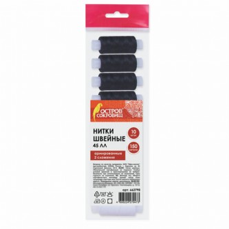 Набор швейных ниток, 10 штук (5 белых и 5 черных) по 150 м, прочные, 45 ЛЛ, ОСТРОВ СОКРОВИЩ, 662790