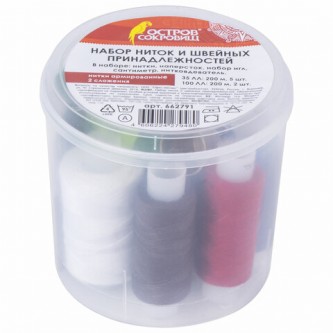 Набор швейных ниток, 24 цвета по 150 м, в тубе, 40 ЛШ, ОСТРОВ СОКРОВИЩ, 662788