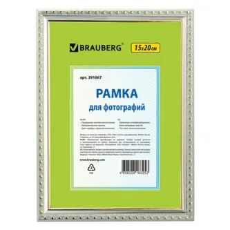 Рамка 21х30 см небьющаяся, багет 15 мм пластик, BRAUBERG "Respect", серебристая, 391271