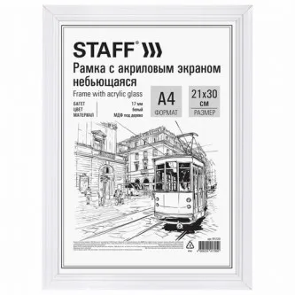 Рамка 21х30 см, дерево, багет 14 мм, BRAUBERG "Elegant", белая, акриловый экран, 391294