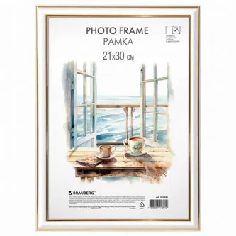Рамка 21х30 см со стеклом, багет 14 мм пластик, BRAUBERG "HIT2", матовое золото, 391380