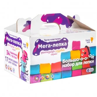 Набор для лепки Genio Kids "Мега лепка", 34 бруска теста по 50 грамм (17 цветов), 2 стека, 10 формочек, 4 штампика, 1 скалка