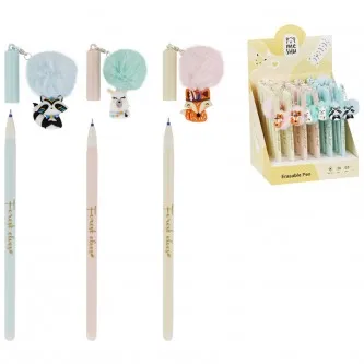 Ручка гелевая стираемая MESHU "Lama" синяя, 0,5мм, корпус ассорти, с топпером