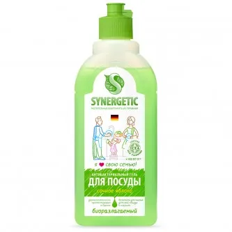 Средство для мытья посуды, фруктов, игрушек Synergetic "Яблоко", антибакт, концентр, с дозат., 500мл