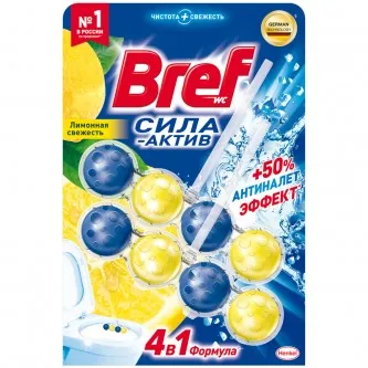Подвесной блок для унитаза Bref "Сила-Актив", лимонная свежесть, 2*50г, блистер