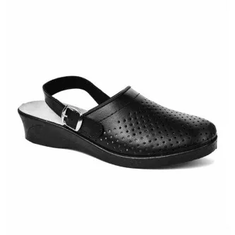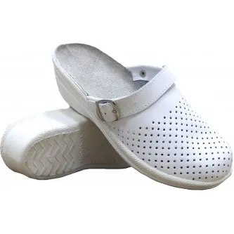 Сабо кожаные с перфорацией, без подкладки, с ремешком для регулировки фиксирования на ноге. Вкладная..