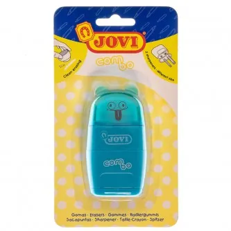 Точилка пластиковая с ластиком JOVI "Combo" 2 отверстия, контейнер, ассорти, блистер