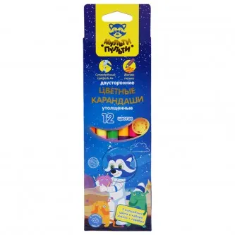 Карандаши цветные Мульти-Пульти "Енот в космосе", 12цв., 06шт., двусторонние, утолщенные, заточен., европодвес
