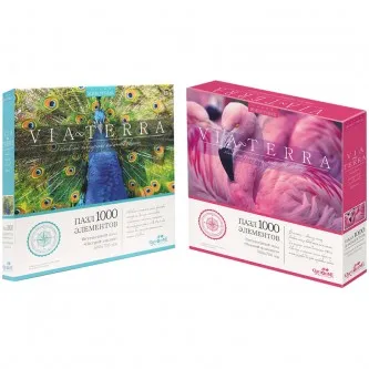 Пазл 1000 эл. Origami "Виа Терра. Пестрый павлин/Розовый фламинго", ассорти