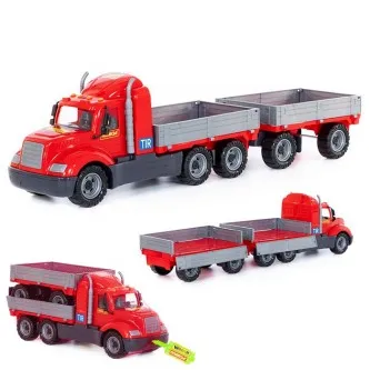 Комплектация: машинка - 1 шт., прицеп - 1 шт. Материал: пластик Размер упаковки: 85,5*19,2*23 см Фун..