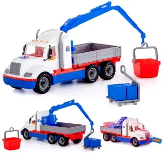 Автомобиль МАЗ с подъёмником инерционный со светом и звуком в коробке 94025 П-Е /8/