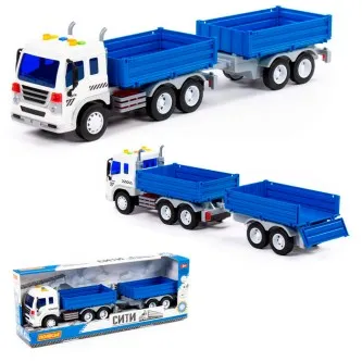 Автомобиль Профи бортовой с прицепом инерционный со светом и звуком синий в коробке 92564