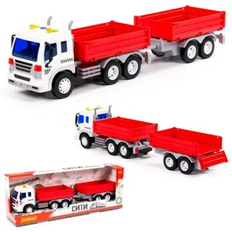 Автомобиль Профи бортовой с прицепом инерционный со светом и звуком красный в коробке 92557
