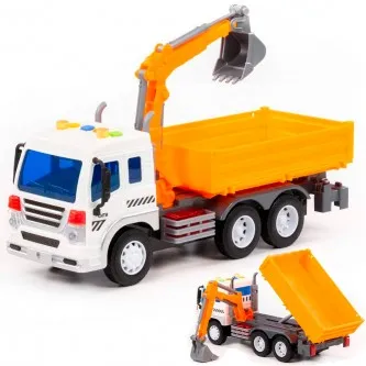 Автомобиль Профи бортовой с ковшом инерционный со светом и звуком оранжевый 96128