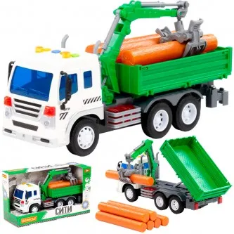 Автомобиль Профи лесовоз инерционный со светом и звуком зелёный в коробке 96180