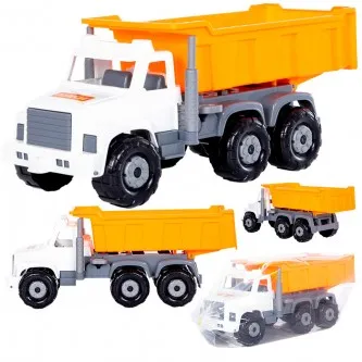 Автомобиль Сити бортовой с ковшом инерционный со светом и звуком оранжевый в коробке 96005