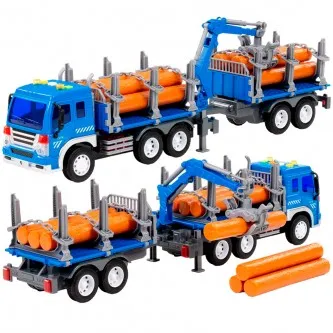 Автомобиль Сити лесовоз с прицепом инерционный со светом и звуком синий в коробке 96074