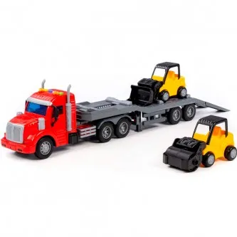 Автомобиль-Трейлер "Профи" + дорожный каток "Мини" погрузчик "Мини" в коробке 77049
