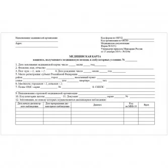 Медицинская карта пациента, получающего медицинскую помощь в амбулаторных условиях, форма №025/у от ..