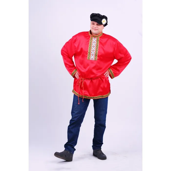 Костюм веселого и доброго Иванушки ждет вас в замечательной коллекции Чародеи от бренда Пуговка. Этот классический образ из русских сказок пригодится для различных торжеств, где требуется эффектное и быстрое перевоплощение. Карнавальный костюм состоит из рубашки и фуражки. Рубашка хорошо сочетается как с брюками, так и с джинсами. Особенности: - Красная просторная рубашка с поясом - Воротник, грудь, рукава и низ рубашки украшены народным орнаментом - Боковые разрезы на рубашке - Черная фуражка с цветочком Характеристики: - Материал: полиэстер - Размеры: 176/56 - Производитель: Пуговка, Россия, 50% хлопок, 50% полиэстер