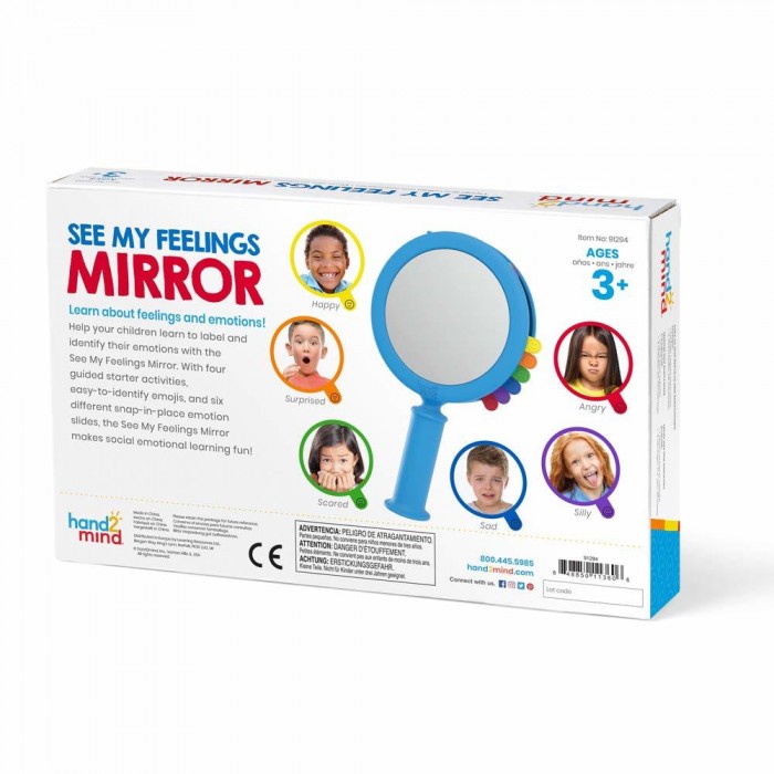 Знакомство со своими собственными эмоциями и эмоциями окружающих людей – это важная часть социального и эмоционального развития ребенка. Этот набор поможет вашему ребенку взглянуть ближе как на свои эмоции, так и на эмоции других людей. В наборе безопасное зеркало с 6 фотослайдами настоящих детей, выражающих ту или иную эмоцию (счастье, удивление, страх, грусть, ребячество и гнев)