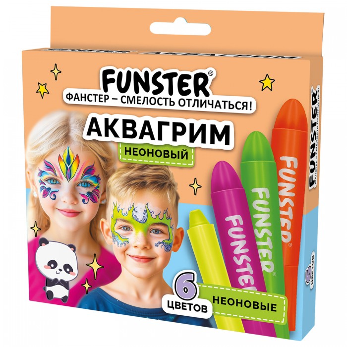 Аквагрим для лица и тела 6 НЕОНОВЫХ цветов FUNSTER, легко смываются, 192573
