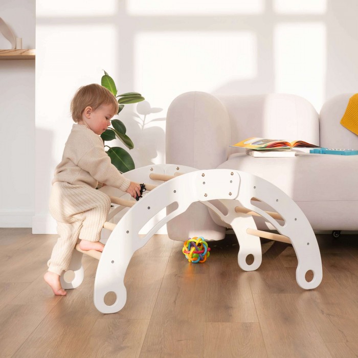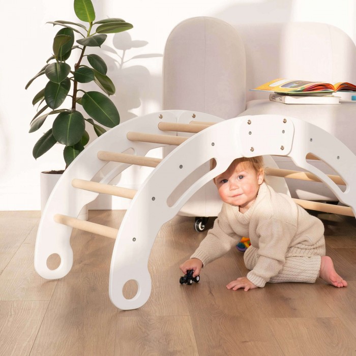 Арка Пиклера — универсальный компактный тренажер для развития координации и укрепления мышц ребенка. Изделие выполнено в форме изогнутой лестницы, которую можно перевернуть и использовать в двух вариациях: