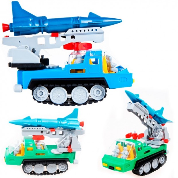 Военная машина "Ракетовоз" на гусеничном ходу увлечет ребенка на долгое время и не даст ему заскучать. Башня стрелы поворачивается, стрела поднимается, ракета запускается при нажатии на красную кнопку, стекло кабины открывается. • Размеры игрушки: 17 x 11 x 7 мм. • Материал: пластмасса. • Соответствует требованиям безопасности и стандартам качества продукции. • Для детей от 3-х лет.