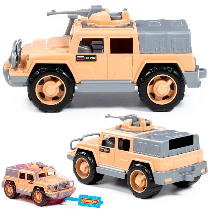 Комплектация: машинка - 1 шт. Материал: пластик Размер упаковки: 31*15,5*14,8 см Функционал: подвижные элементы Оформление: стиль - армейский, камуфляжная окраска (беж) Упаковка: сетка Страна обладатель бренда: Беларуст Оригинальная машинка представляет собой уменьшенную копию военного автомобиля, изготовленную из высококачественных материалов. Характерная окраска и дизайн делают машину максимально реалистичной. Прозрачные окна позволяют рассмотреть детально проработанный салон. Проработанные детали придают ей реалистичность и делают процесс игры увлекательнее. Такая модель станет прекрасным подарком юному коллекционеру или просто любителю автомобилей. С автомобилем интересно будет играть с друзьями. С ним можно устроить импровизированные гоночные соревнования дома или на улице. Изделия просты в уходе и эксплуатации, прочные и долговечные, они будут долго радовать своим внешним видом.