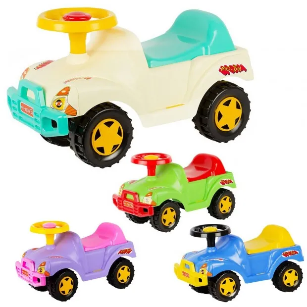 Багажное отделение под сидением. • При повороте руля, поворачиваются передние колёса. • Диаметр колёс: 15 см. • В комплекте запасное колесо. • Пищалка на руле. • Максимальная нагрузка: 30 кг. • Размер игрушки (см) : 61 х 30 х 33. • Высота от пола со сиденья: 23 см. • Материал: пластик. • Соответствует требованиям безопасности продукции. • Возраст: от 1,5 лет