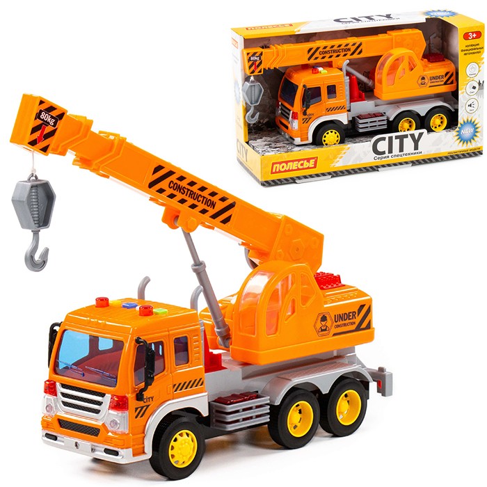 Автомобиль-кран Сити инерц. свет, звук оранжевый в коробке 86556 П-Е /8/