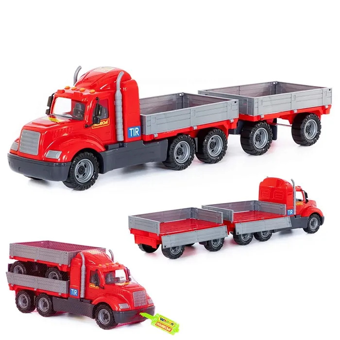 Комплектация: машинка - 1 шт., прицеп - 1 шт. Материал: пластик Размер упаковки: 85,5*19,2*23 см Функционал: подвижные элементы Упаковка: сетка Страна обладатель бренда: Беларусь Грузовик с прицепом разнообразит игровые сюжеты и позволит перевозить массу вещей. Оригинальная машинка для самых маленьких выполнена из высококачественного пластика. Яркая окраска и интересный дизайн делают машину реалистичной, а процесс игры интересным. Игрушка оснащена крутящимися колесами со свободным ходом и будет хорошо кататься по ровной поверхности. Такая модель станет прекрасным подарком маленькому любителю автомобилей, а также разнообразит игровые сюжеты. С ним можно устроить массу увлекательных игр с друзьями дома или на улице. Изделия просты в уходе и эксплуатации, прочные и долговечные, они будут долго радовать своим внешним видом.