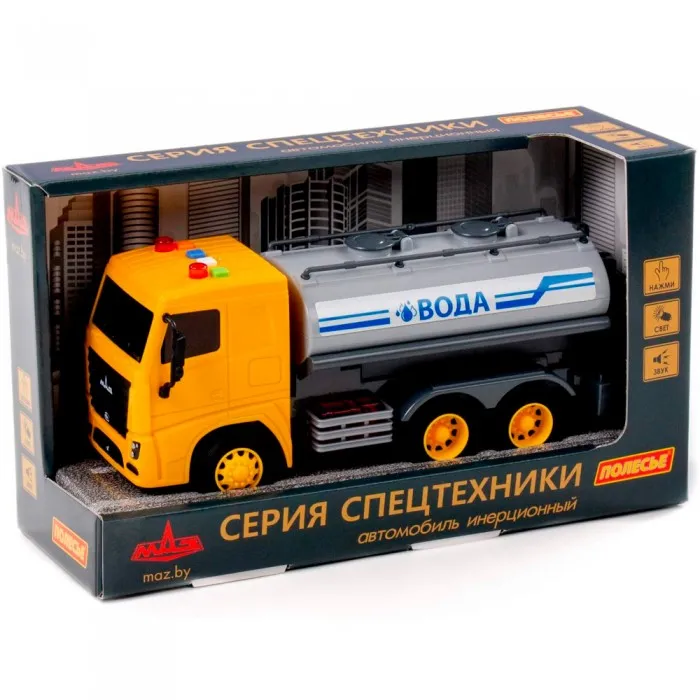 Автомобиль МАЗ поливочный инерционный со светом и звуком (в коробке) 94100 П-Е /8/