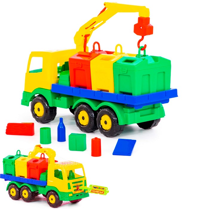 Комплектация: автомобиль, аксессуары Материал: пластик Размер упаковки: 42*17*25 см Функционал: подвижные элементы, подъёмный механизм, сортер Упаковка: сетка Страна обладатель бренда: Беларусь Интересный и функциональный набор порадует маленького автолюбителя. Модели изготовлены из высококачественных материалов с использованием безопасных красителей. Яркая окраска и характерный дизайн делают модели реалистичными и узнаваемыми. Автомобиль-контейнеровоз оснащён подъёмным механизмом, который работает по принципу крана. На платформе размещаются контейнеры. Контейнеры выполняют функцию сортера: к каждому из отверстий необходимо подобрать нужные фигурки. Такой набор станет прекрасным подарком юному коллекционеру или просто любителю автомобилей. С набором будет интересно играть с друзьями и дома, и на улице. Игрушка проста в уходе и эксплуатации и будет долго радовать своим внешним видом.