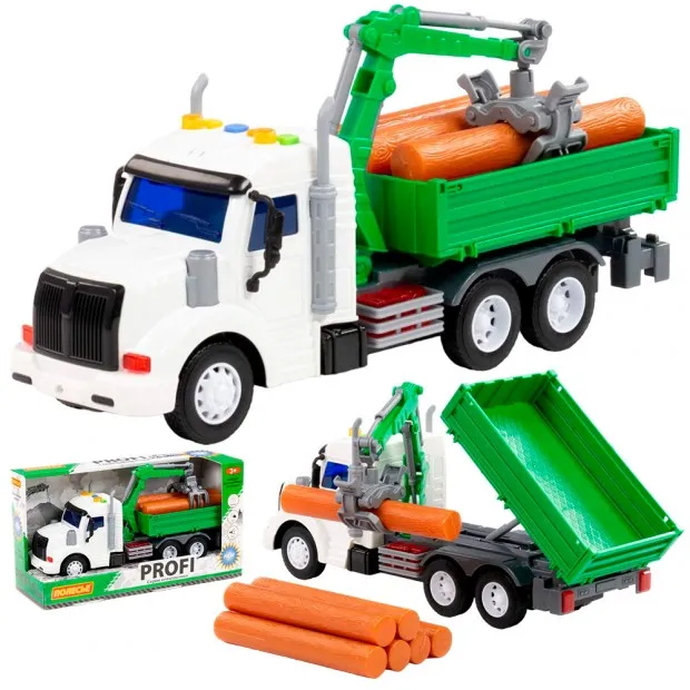 Автомобиль Профи бортовой с манипулятором инерционный со светом и звуком зеленый в коробке 96142