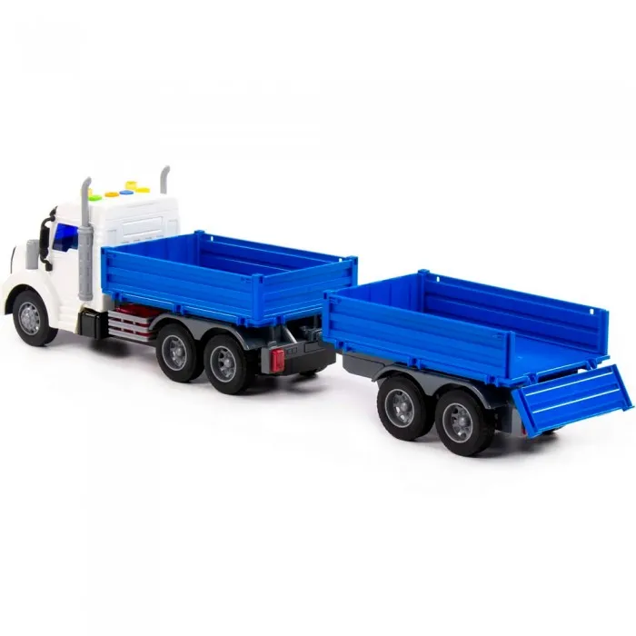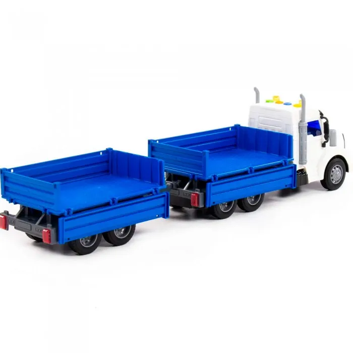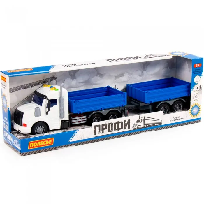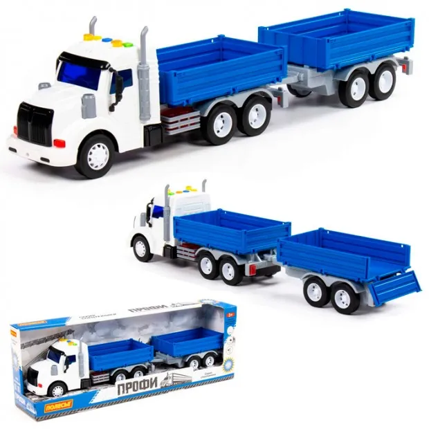 Автомобиль Профи бортовой с прицепом инерционный со светом и звуком синий в коробке 92564