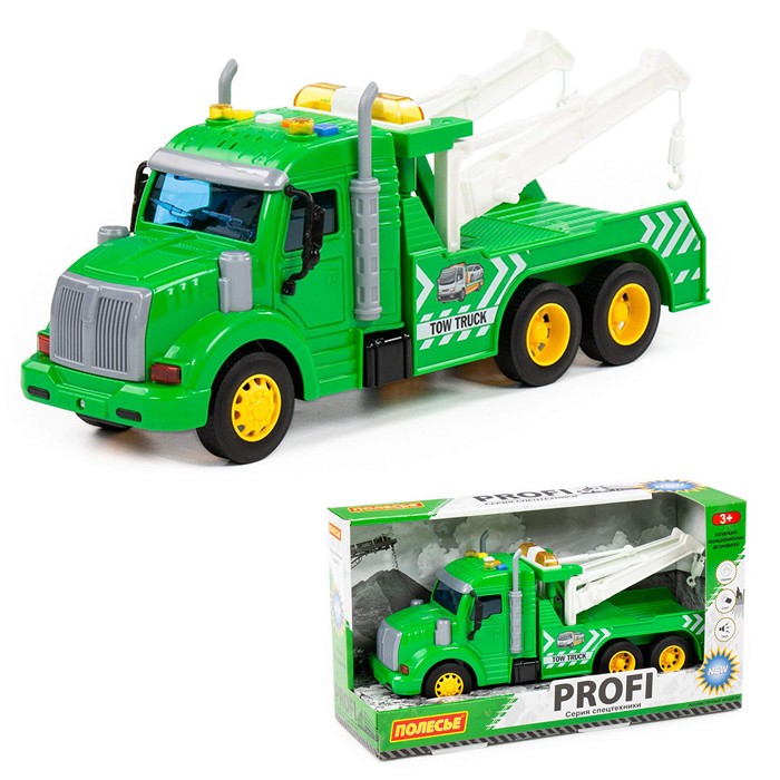 Автомобиль Профи эвакуатор инерционный со светом и звуком зеленый в коробке 86594