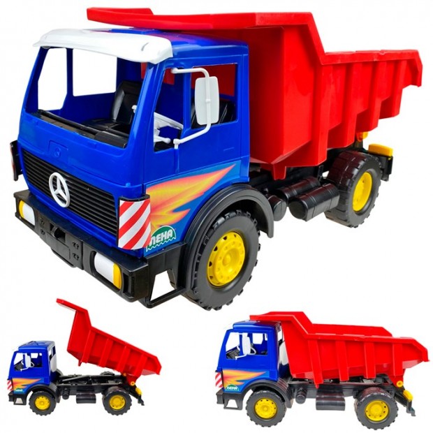 Размеры: 45х25х21 см Размер упаковки- 45*25*21 см Дорожный самосвал "Мерседес" от компании Lena - прекрасное пополнение в коллекцию автотранспорта для малыша. Грозный и массивный самосвал прекрасно подойдет для игры в песочнице. Своим вместительным кузовом он может перевозить очень много песка, кузов поднимается и опускается.