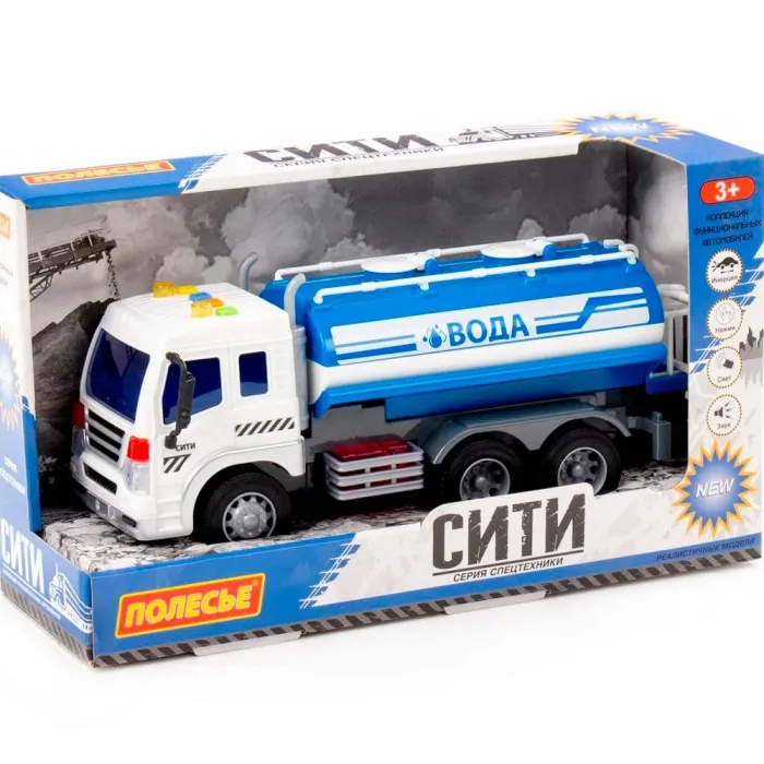 Автомобиль Сити поливочный, инерционный со светом и звуком синий в коробке 89755