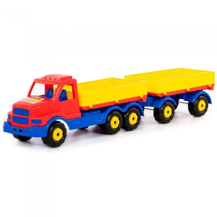 Комплектация: машинка - 1 шт., прицеп - 1 шт. Материал: пластик Размер упаковки: 76*16,5*18,5 см Функционал: подвижные элементы Упаковка: сетка Страна обладатель бренда: Беларусь Грузовик с прицепом разнообразит игровые сюжеты и позволит перевозить массу вещей. Оригинальная машинка для самых маленьких выполнена из высококачественного пластика. Яркая окраска и интересный дизайн делают машину привлекательной. Игрушка оснащена крутящимися колесами со свободным ходом и будет хорошо кататься по ровной поверхности. Стилизация и характерный дизайн делают машину интересной для малышей, а процесс игры увлекательным. Такая модель станет прекрасным подарком маленькому любителю автомобилей, а также разнообразит игровые сюжеты. С ним можно устроить массу увлекательных игр с друзьями дома или на улице. Изделия просты в уходе и эксплуатации, прочные и долговечные, они будут долго радовать своим внешним видом.