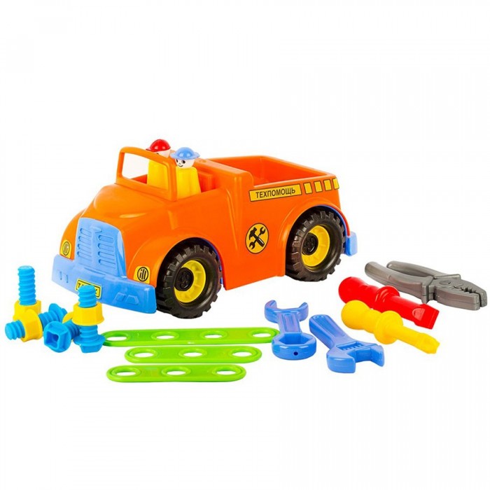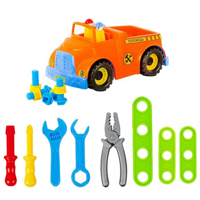 Размер упаковки: 30*15*16 см Размер изделия: 28*15*16 см Функционал: свободный ход колес, открытый кузов, инструменты Упаковка: пакет Страна обладатель бренда: Россия Материал: пластик Комплектация: машинка - 1 шт., фигурка - 2 шт., набор инструментов (плоскогубцы, 2 гаечных ключа, 2 отвёртки, 3 пластины, болты и гайки - 8 шт.) Возраст ребенка: от 3 лет • Яркая модель представляет собой копию грузовика с вместительным кузовом. • Серия пластиковых автомобилей подарит возможность собрать свою коллекцию самых разных моделей автотранспорта. • Модель выполнена в классическом стиле. • В комплект входят фигурки водителя и пассажира, а еще набор разнообразных инструментов, который позволит примерить на себя роль мастера. • Все модели серии функциональны - с ними можно придумать интересные игры. • Такая машинка станет хорошим подарком юному коллекционеру или просто любителю автомобилей. • Колеса со свободным ходом позволяют машинке легко двигаться. • Подходит для игр дома и на улице.