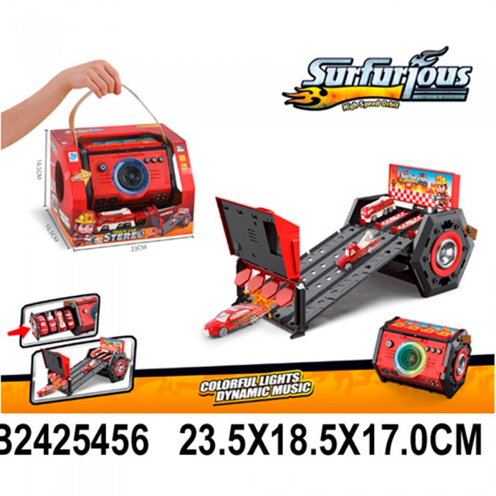 Размер упаковки: 23 х 18,5 х 17 см Размер изделия: 18 х 15 х 14 см Функционал: игрушка на батарейках, автотрек Вид упаковки: картонная коробка открытого типа с блистером Страна производитель: КНР Материал: пластик Комплектация: автотрек - 1 шт, машинки - 2 шт Возраст ребенка: для детей от 5 лет Автотрек с машинками позволяет детям окунуться в увлекательные гоночные соревнования. Характеристики: - размер изделия в собранной виде - складная конструкция трека - с помощью ручки из эко кожи легко транспортировать - в наборе 2 машинки с инерционным механизмом - размер машинок 7,5 см - подсветка - звуковые эффекты - для работы необходимы 3 батареи LR1130 1.5V (входят в комплект)
