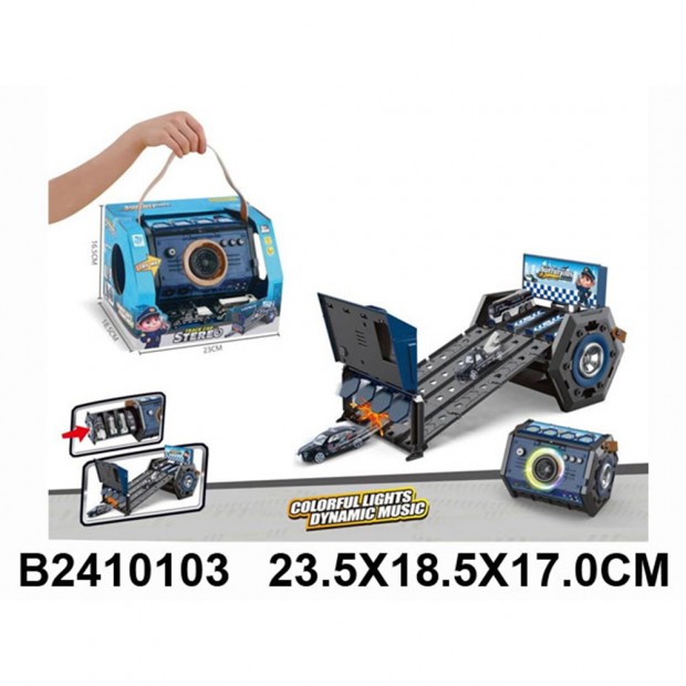 Размер упаковки: 23 х 18,5 х 17 см Размер изделия: 18 х 15 х 14 см Функционал: игрушка на батарейках, автотрек Вид упаковки: картонная коробка открытого типа с блистером Страна производитель: КНР Материал: пластик Комплектация: автотрек - 1 шт, машинки - 2 шт Возраст ребенка: для детей от 5 лет Автотрек с машинками позволяет детям окунуться в увлекательные гоночные соревнования. Характеристики: - размер изделия в собранной виде - складная конструкция трека - с помощью ручки из эко кожи легко транспортировать - в наборе 2 машинки с инерционным механизмом - размер машинок 7,5 см - подсветка - звуковые эффекты - для работы необходимы 3 батареи LR1130 1.5V (входят в комплект)