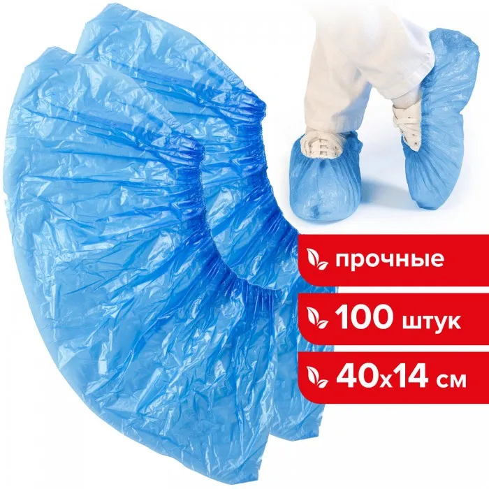 Бахилы КОМПЛЕКТ 100 штук (50 пар) в упаковке, ПРОЧНЫЕ, 40х14 см, 4 г, ПНД, LAIMA, 103425